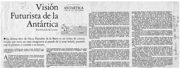 Visión futurista de la Antártica [artículo] Por Fernando de la Lastra.