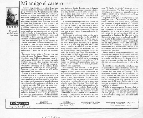 Mi amigo el cartero [artículo] Fernando de la Lastra Bernales.