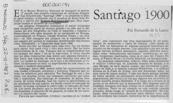 Santiago 1900 [artículo] Fernando de la Lastra.