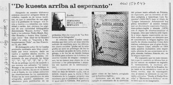"De kuesta arriba al esperanto" [artículo] Fernando de la Lastra Bernales.