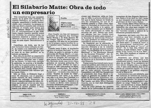 El silabario Matte, obra de todo un empresario [artículo] Fernando de la Lastra Bernales.