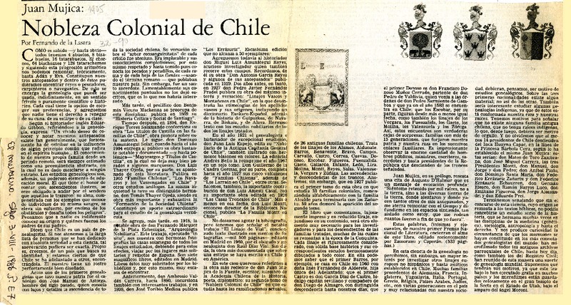 Nobleza colonial de Chile [artículo] Fernando de la Lastra.
