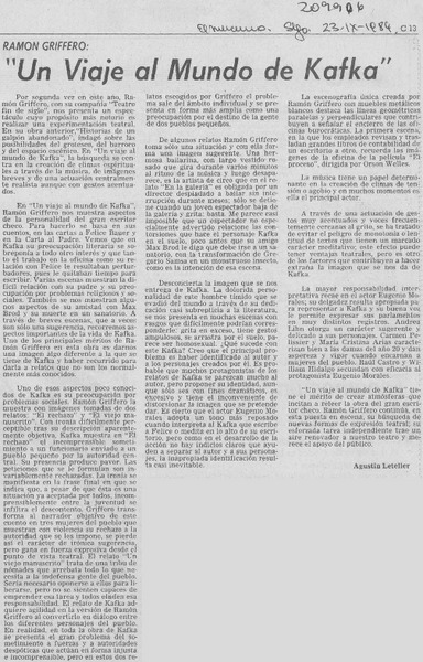 "Un viaje al mundo de Kafka" [artículo] Agustín Letelier.