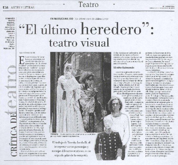 "El último heredero", teatro visual [artículo] Egustín Letelier.