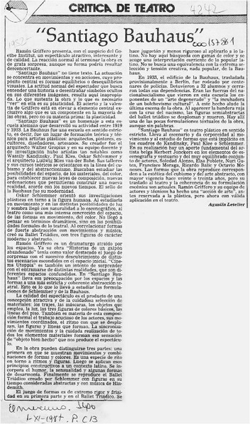 "Santiago Bauhaus 1987" [artículo] Agustín Letelier.