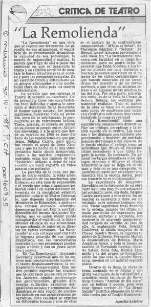 "La remolienda" [artículo] Agustín Letelier.