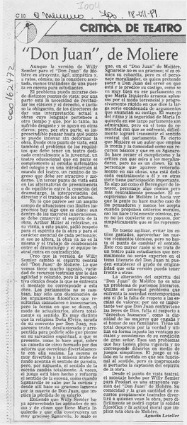 "Don Juan", de Moliére [artículo] Agustín Letelier.