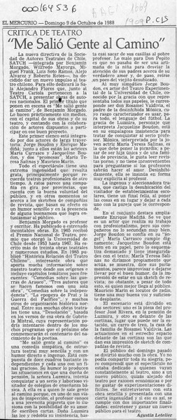 "Me salió gente al camino" [artículo] Agustín Letelier.