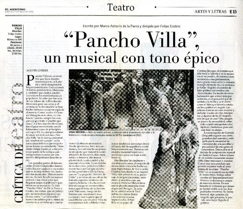 Pancho Villa, un musical con tono épico [artículo] Agustín Letelier.