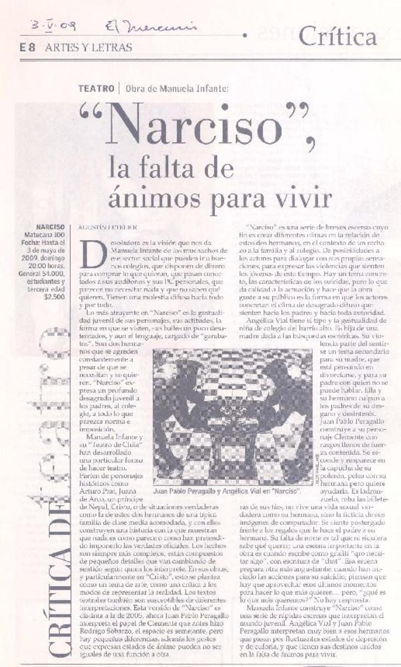 "Narciso", la falta de ánimos para vivir [artículo] Agustín Letelier.