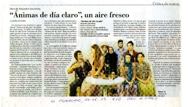 "Ánimas de día claro", un aire fresco [artículo] Agustín Letelier.