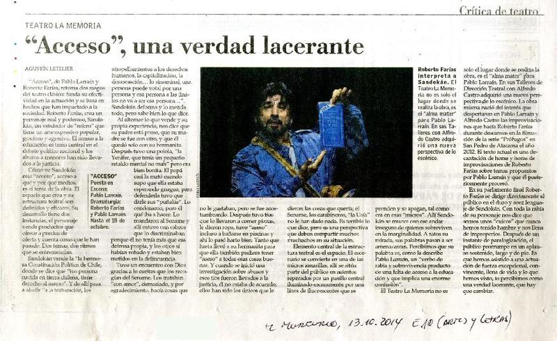 "Acceso", una verdad lacerante [artículo] Agustín Letelier