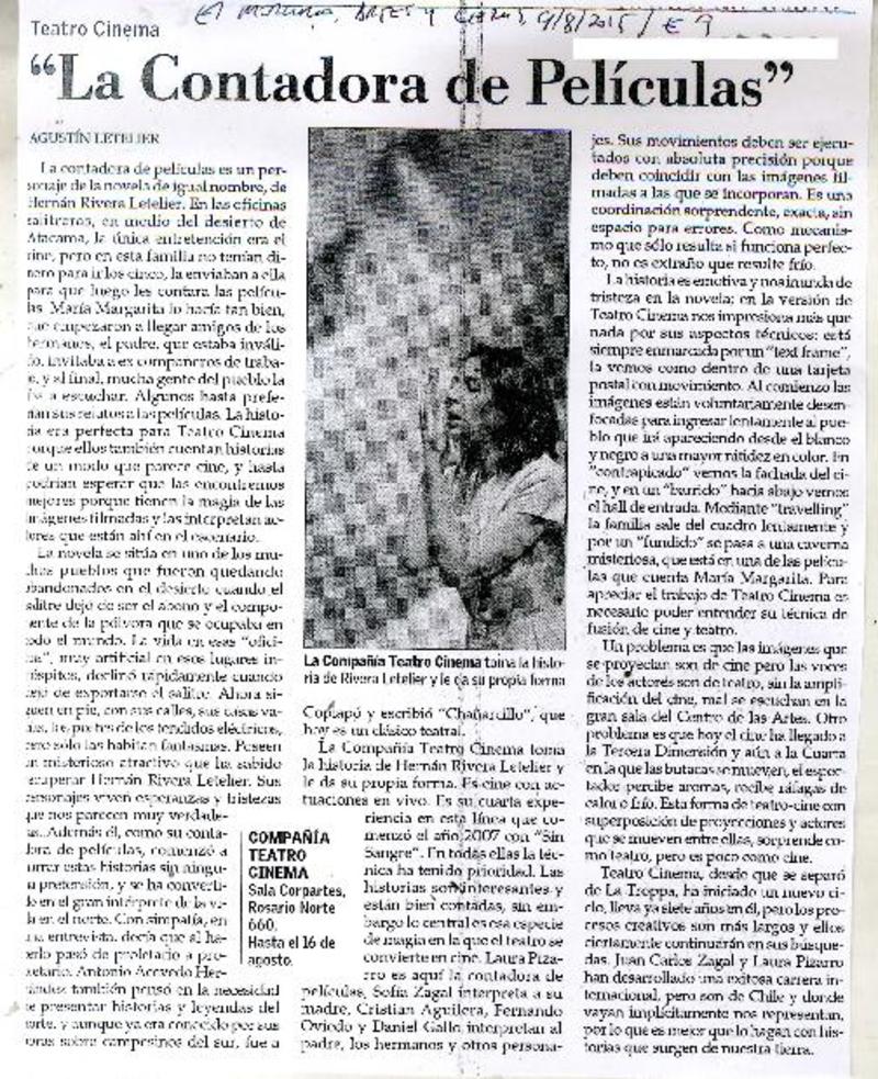 "La contadora de películas" [artículo] Agustín Letelier.