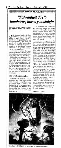 Fahrenheint 451", bomberos, libros y nostalgia [artículo] Samuel Silva.