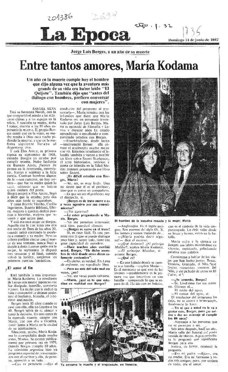 Entre tantos amores, María Kodama [artículo] Samuel Silva.
