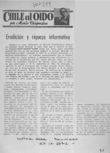 Erudición y riqueza informativa [artículo] Mario Céspedes.