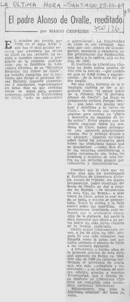 El padre Alonso de Ovalle, reeditado [artículo] Mario Céspedes Gutiérrez.