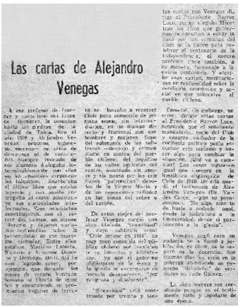 Las cartas de Alejandro Venegas [artículo] Mario Céspedes.