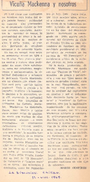 Vicuña Mackenna y nosotros [artículo] Mario Céspedes.