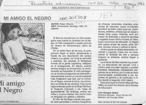 Mi amigo el negro [artículo] Julia Venegas Quiroz.