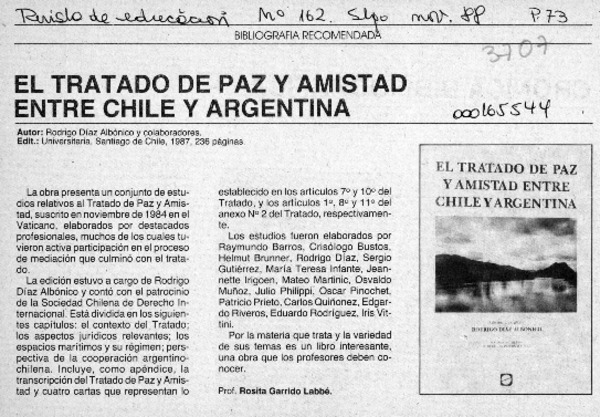 El tratado de paz y amistad entre Chile y Argentina [artículo] Rosita Garrido Labbé.