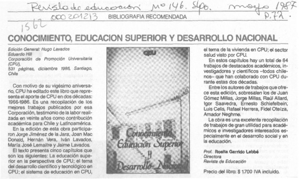Conocimiento, educación superior y desarrollo nacional [artículo] Rosita Garrido Labbé.
