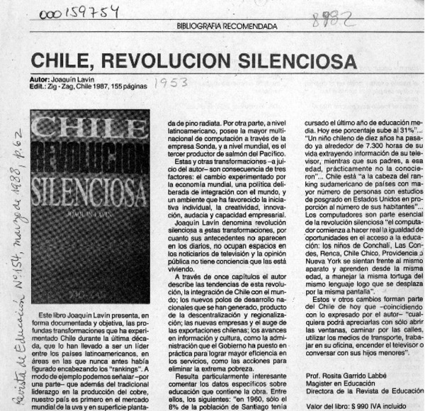 Chile, revolución silenciosa [artículo] Rosita Garrido Labbé.
