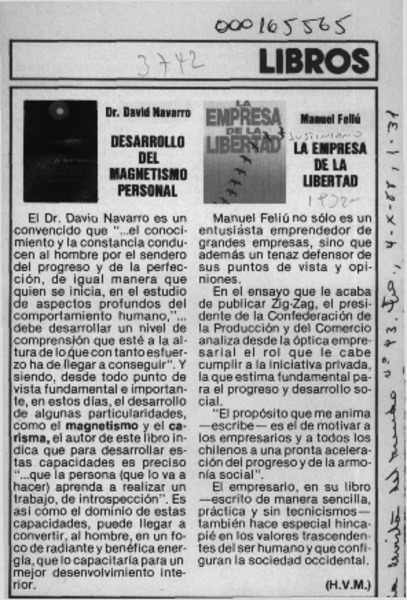 Autores chilenos - La empresa de la libertad - Navarro C., David - Feliú Justiniano, Manuel - Desarrollo del magnetismo personal