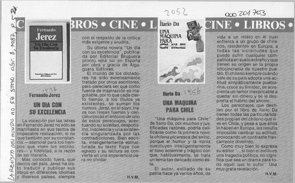 JEREZ, FERNANDO - DIA CON SU EXCELENCIA, UN - DA, ILARIO - MAQUINA PARA CHILE, UNA
