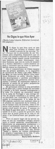 No digas lo que hice ayer [artículo] María Ester Roblero.
