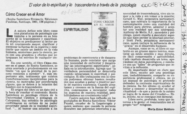Cómo crecer en el amor [artículo] María Ester Roblero.