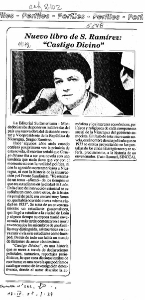 Nuevo libro de S. Ramírez : "Castigo Divino" [artículo] Juan Samuel.