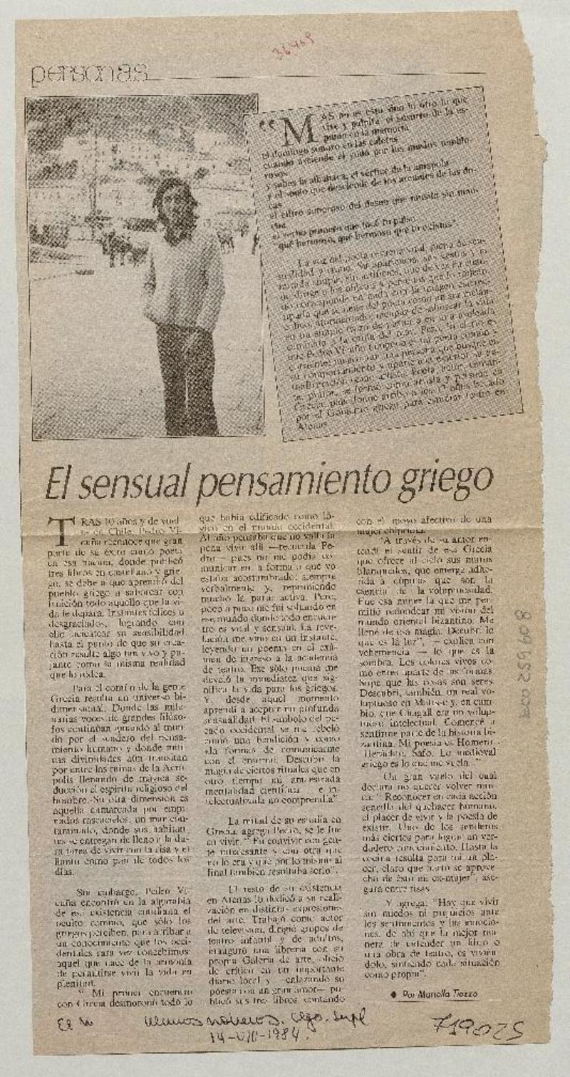 El sensual pensamiento griego [artículo] Mariella Tiozzo.