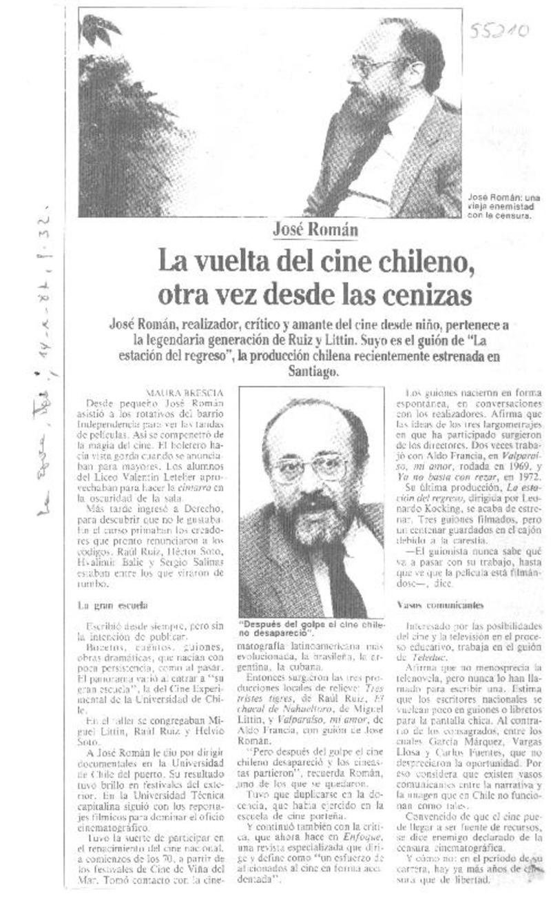 Autores chilenos - Román, José - Cine y literatura - La estación del regreso
