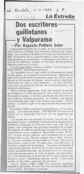 Dos escritores quillotanos y Valparaíso [artículo] Augusto Poblete Solar.