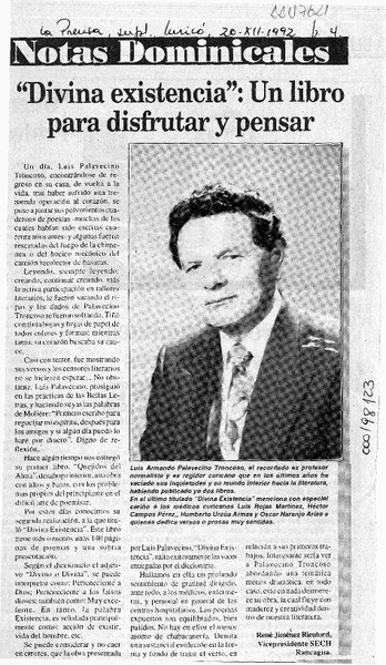 "Divina existencia", un libro para disfrutar [artículo] René Jiménez Rieutord.