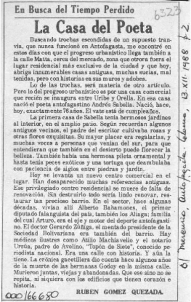 La casa del poeta [artículo] Rubén Gómez Quezada.