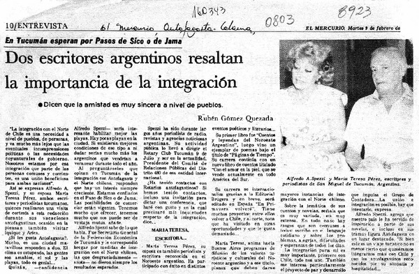 Dos escritores argentinos resaltan la importancia de la integración [artículo] Rubén Gómez Quezada.
