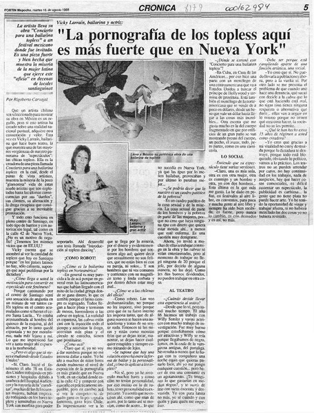 "La pornografía de los topless aquí es más fuerte que en Nueva York" [artículo] Rigoberto Carvajal.
