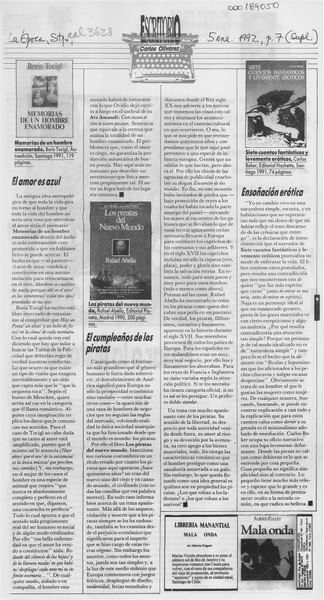 Autores chilenos - Autores españoles - Tocigl Sega, Boris - Boker, Carlos - Siete cuentos fantásticos y levemente eróticos - ABELLA, RAFAEL - PIRATAS DEL NUEVO MUNDO, LOS - Memorias de un hombre enamorado