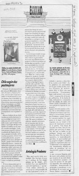 Chile según dos postmujeres [artículo] Carlos Olivárez.