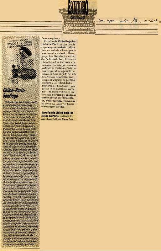 Autores chilenos - Torres, Guillermo - Chiloé-París-Santiago