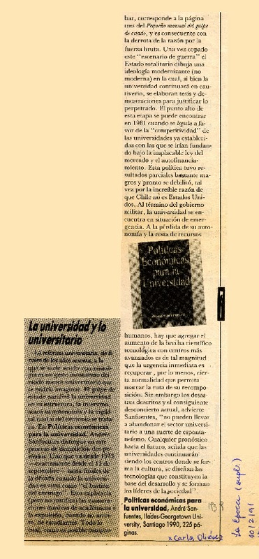 Autores chilenos - Sanfuentes, Andrés - Políticas económicas para la universidad