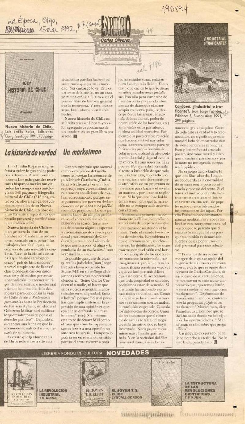 Autores chilenos - Rojas, Luis Emilio - Faundes, Juan Jorge - Cardoen, industrial o traficante? - Nueva Historia de Chile
