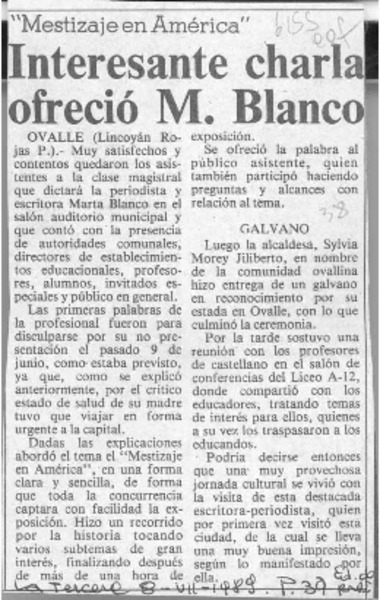 Interesante charla ofreció M. Blanco [artículo] Lincoyán Rojas P.