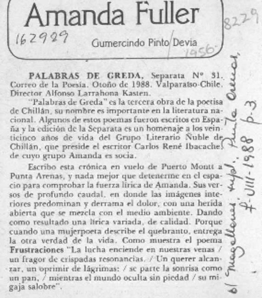 Amanda Fuller [artículo] Gumercindo Pinto Devia.