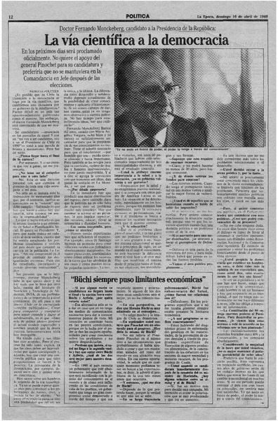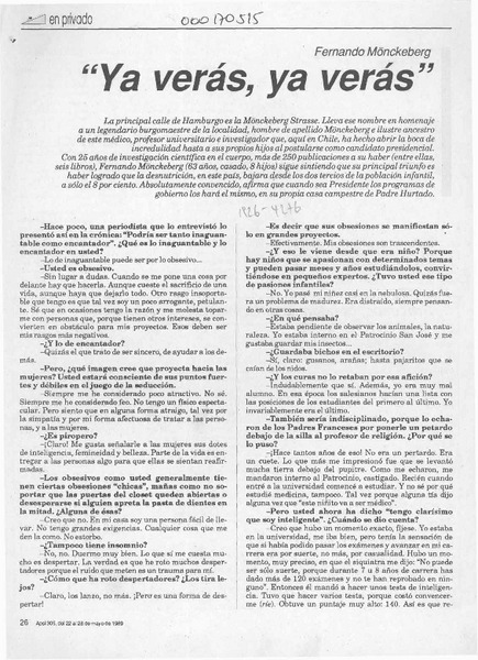 Mönckeberg también quiere llegar hasta el final mismo [artículo] Susana Kúncar.