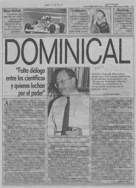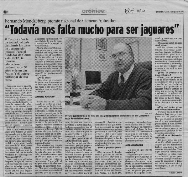 Fernando Monckeberg, jaque mate -- a la desnutrición [artículo] Ana María Larraín.