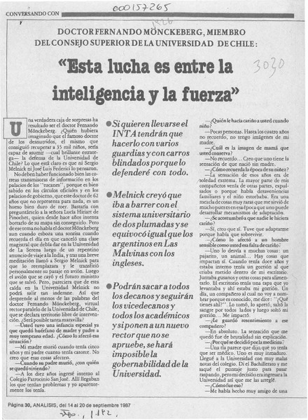 "Esta lucha es entre la inteligencia y la fuerza" [artículo] Mónica González.