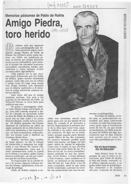 Autores chilenos - Rokha, Pablo de - Amigo piedra